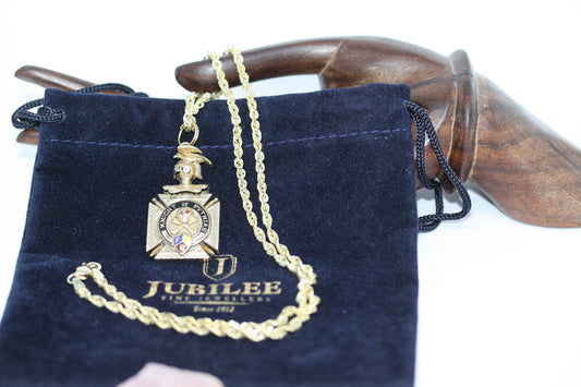 Antique 1890's Fraternal Old Knights Pythias FCB Skull Bones Washington Pendant 3MM Rope 10K Solid Gold 18" Necklace
