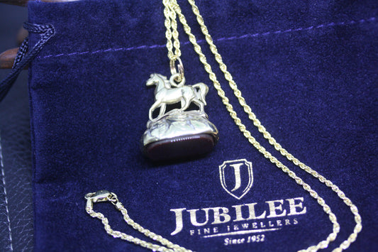 Antique 1890's Carnelian Agate Horse Pendant 10K Solid Yellow Gold Ladies Women's Necklace 18"
