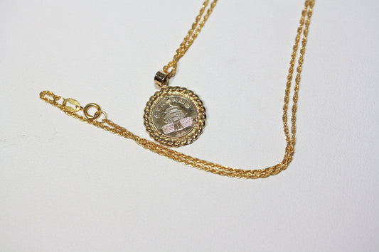 14K Panda Gold 1/20 Copy Coin 14K Rope Bezel Pendant Solid 18K Gold 1 MM 18" Women's Necklace