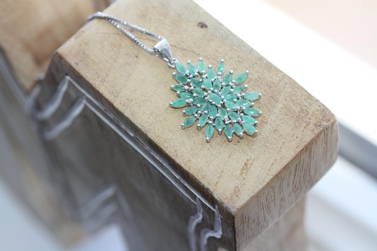 925 Sterling Silver 3.6CT Marquise Emerald Natural Gemstone Jewelry 20" Box Chain Women's Necklace