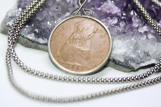 1967 Elizabeth II 1967 One Penny Coin Pendant 925 Silver 22" Necklace 3 MM Cable